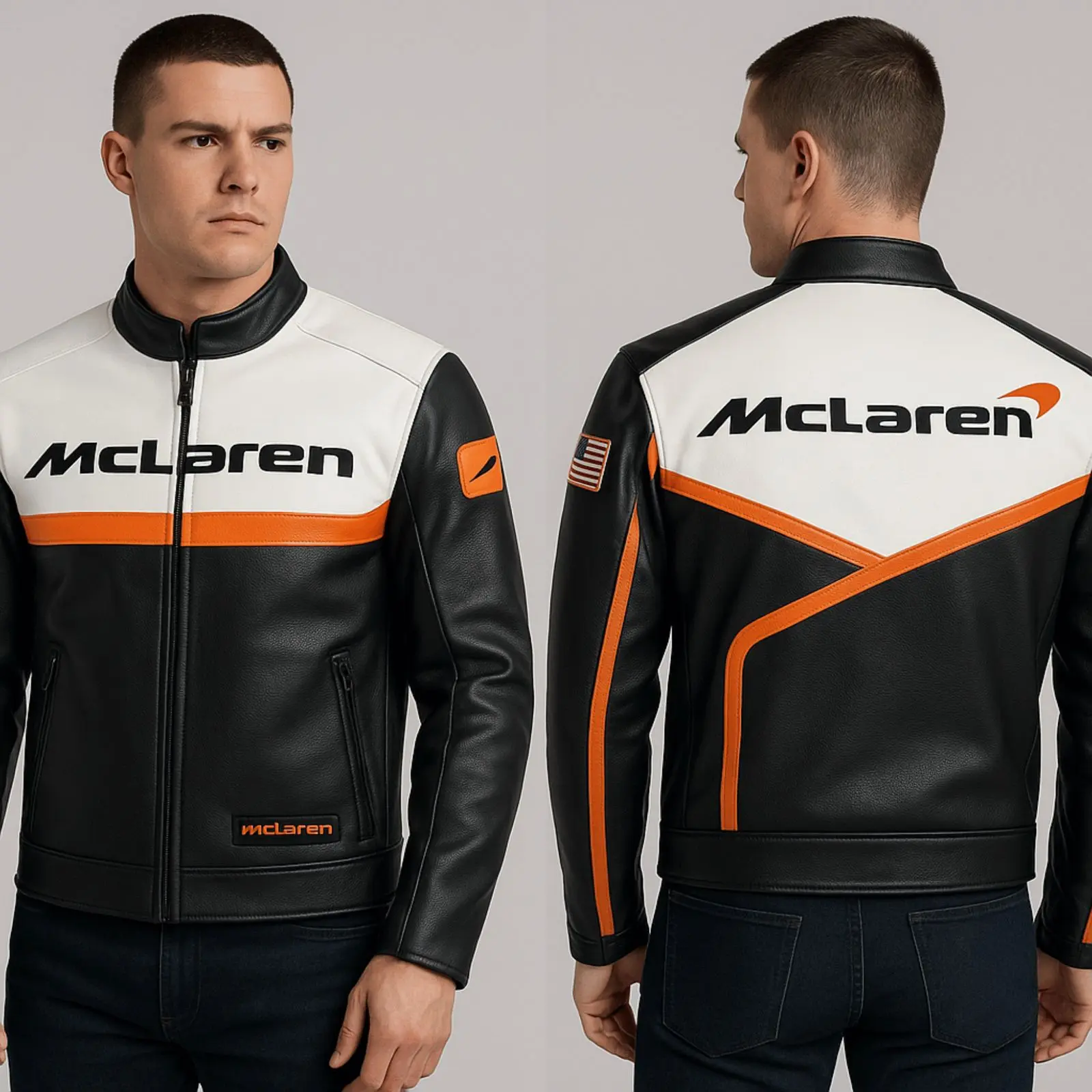Men’s Black and Orange McLaren Racing Leather Jacket