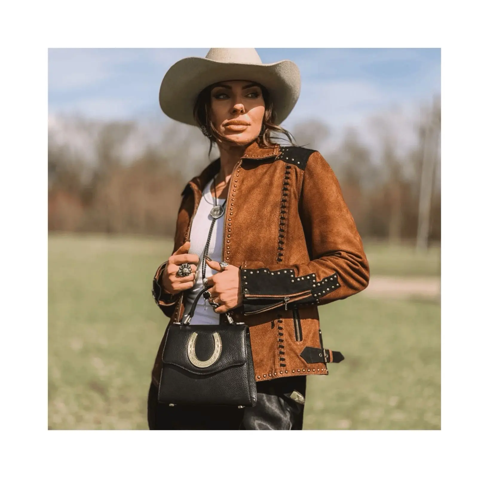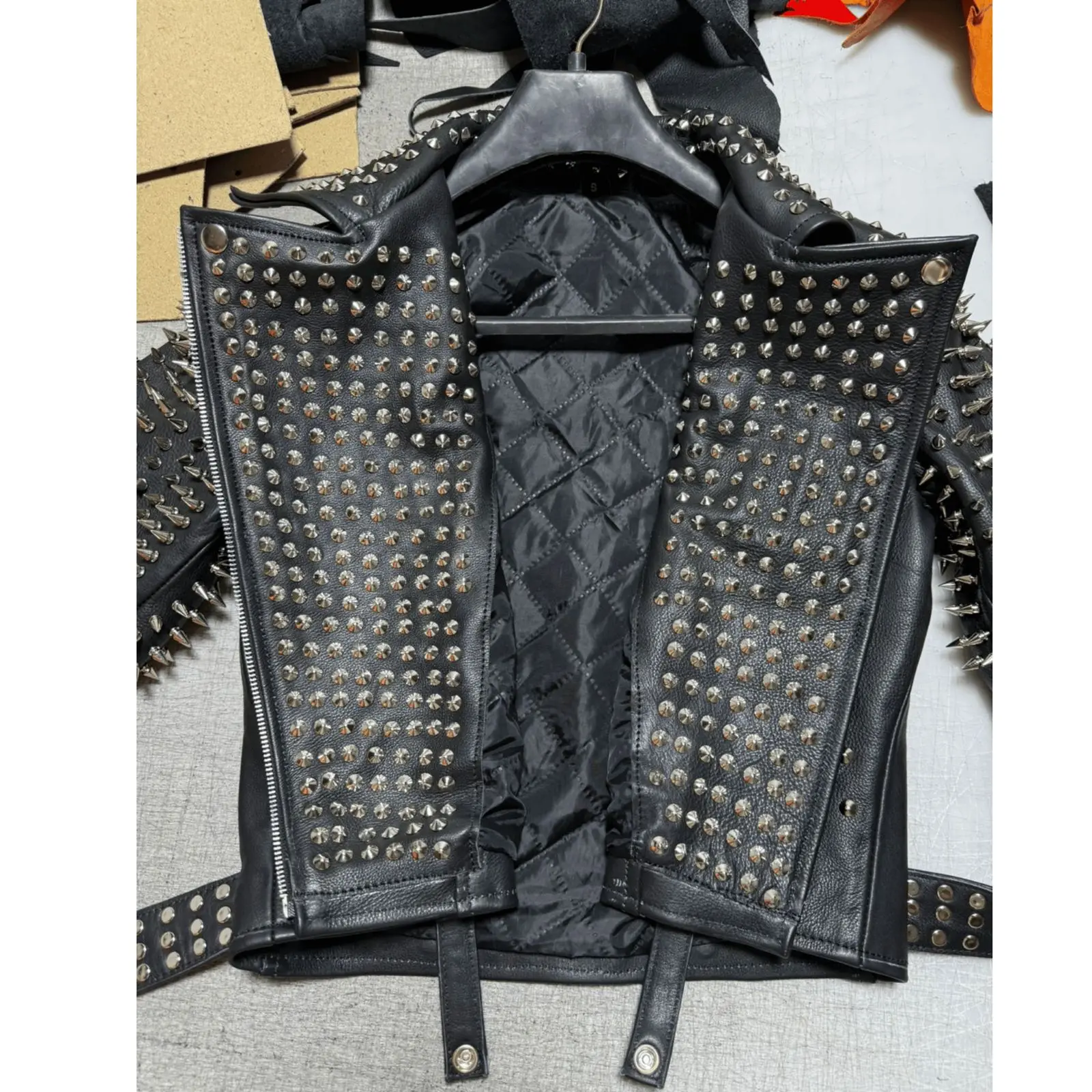 Women’s Black Studded Cowhide Leather Jacket with Spikes