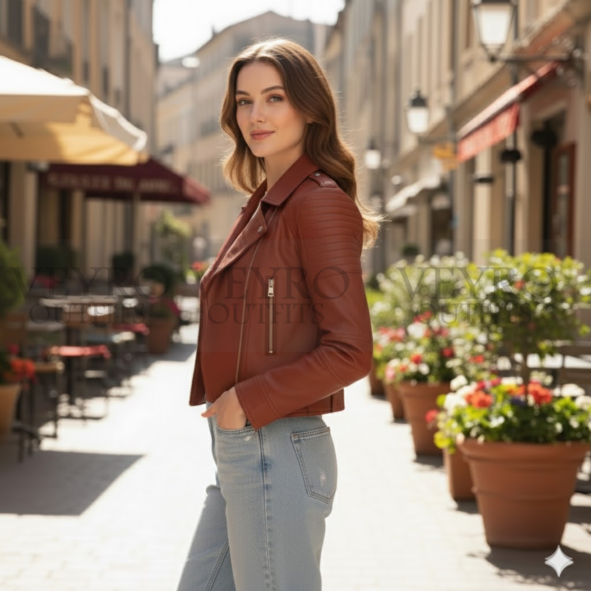 Ready to redefine your outerwear collection? The Catalina Women’s Quilted Leather Jacket in Rich Cognac is waiting. It’s more than an addition to your wardrobe; it’s the cornerstone of countless unforgettable outfits. Experience the perfect fusion of timeless moto inspiration and contemporary design. Shop this exclusive style today and discover the Veyro difference—where every detail is designed with you in mind.