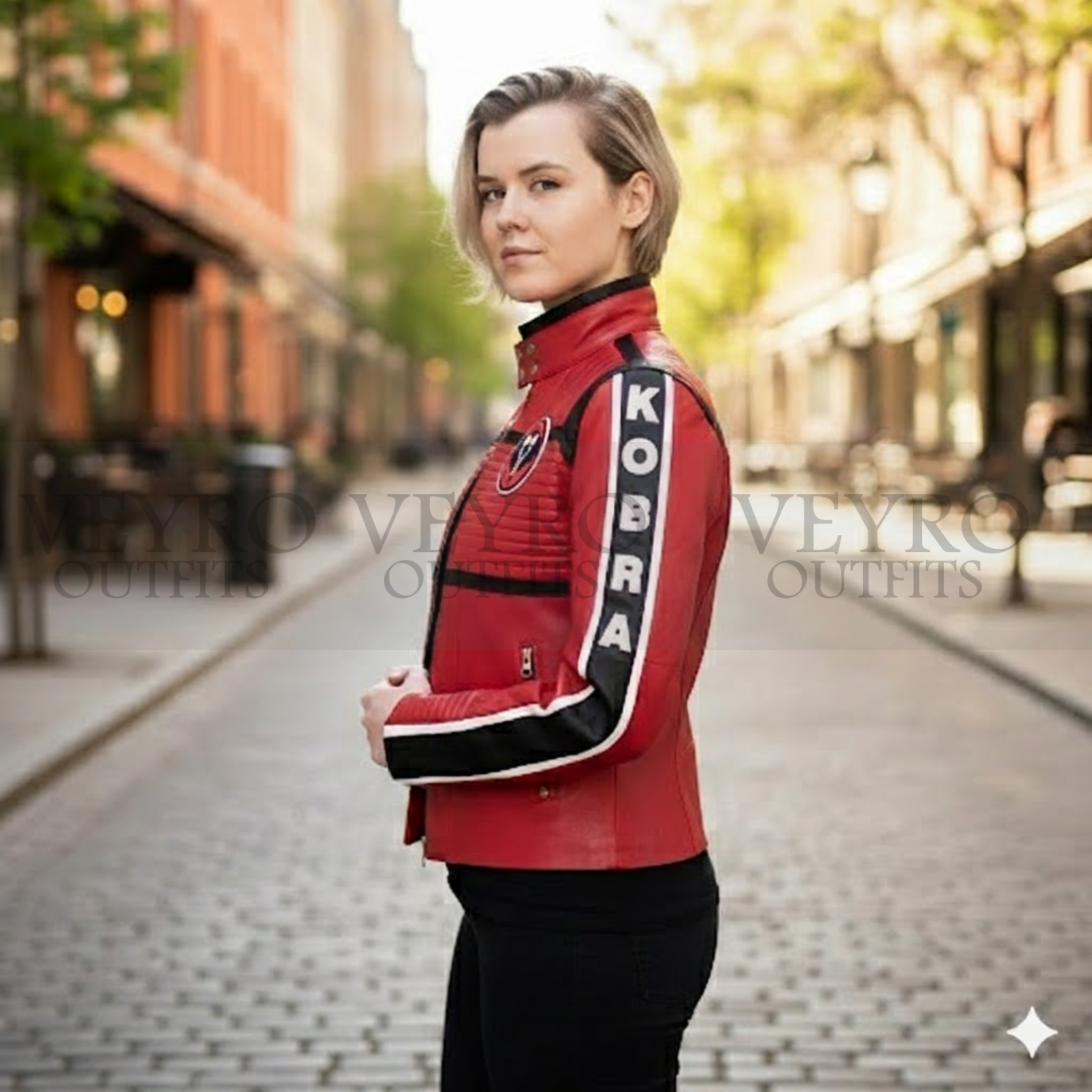 The Cobra Kai Jacket from Veyro Outfits represents the perfect fusion of pop culture inspiration and premium fashion construction. With its vibrant red color, distinctive graphics, and quality leather build, this piece deserves a place in every bold woman’s wardrobe. Available now and shipping across Canada—strike first and claim yours today.