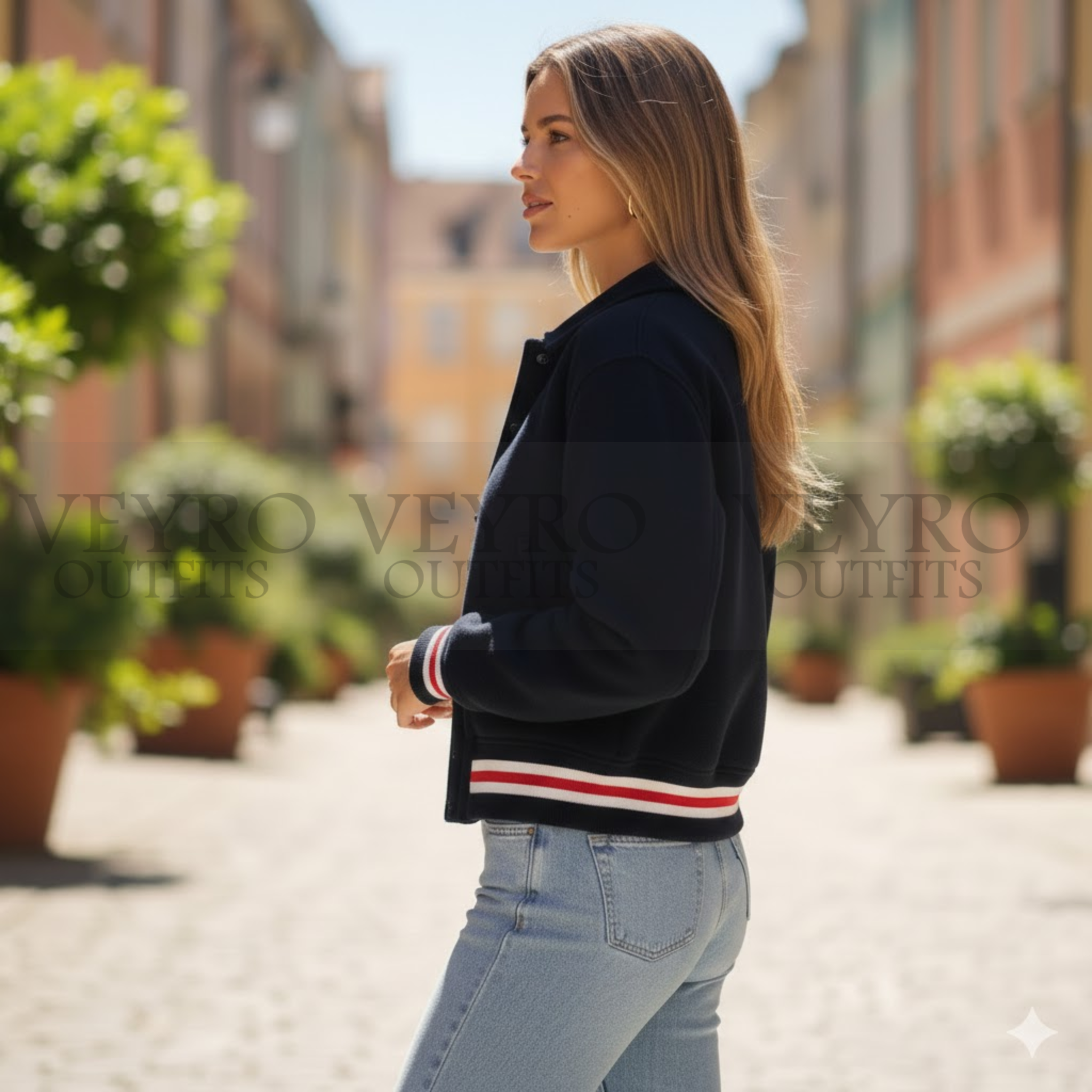 At Veyro Outfits, we believe in creating pieces that last. That’s why we’ve designed this women’s navy bomber jacket with attention to every detail. From the comfortable fit to the striking ribbed trim, Cropped bomber jacket made to become your go-to outerwear piece.