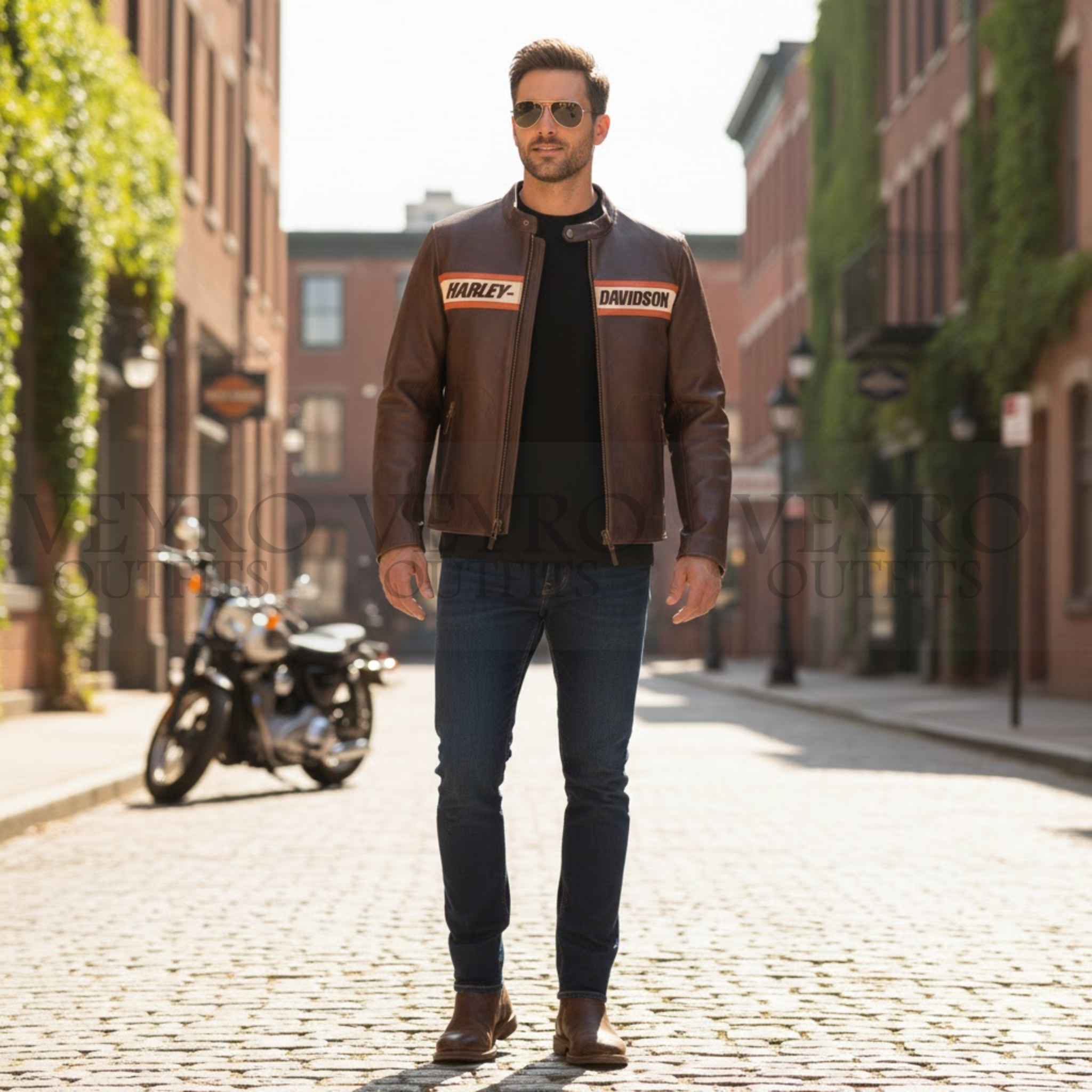 For the rider seeking authentic style and proven protection, this Harley Davidson leather jacket stands alone. The Victory Lane model delivers the heritage, craftsmanship, and rugged good looks that define the Harley-Davidson experience. Crafted from heavyweight distressed cowhide in a deep antique brown, this Harley Davidson leather jacket isn’t just gear—it’s a statement. It’s built for the freedom of the open road and designed to develop a unique patina, telling the story of your journeys. At Veyro Outfits, we are proud to bring this iconic piece to riders across Canada, offering a perfect blend of classic biker aesthetics and functional design.