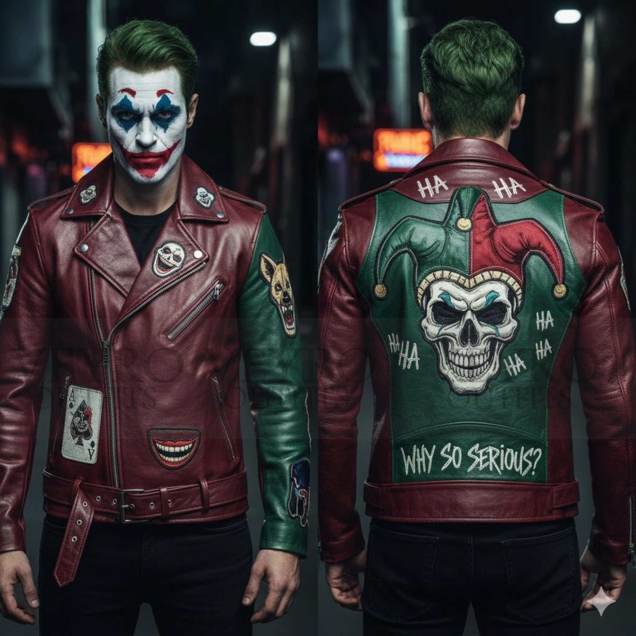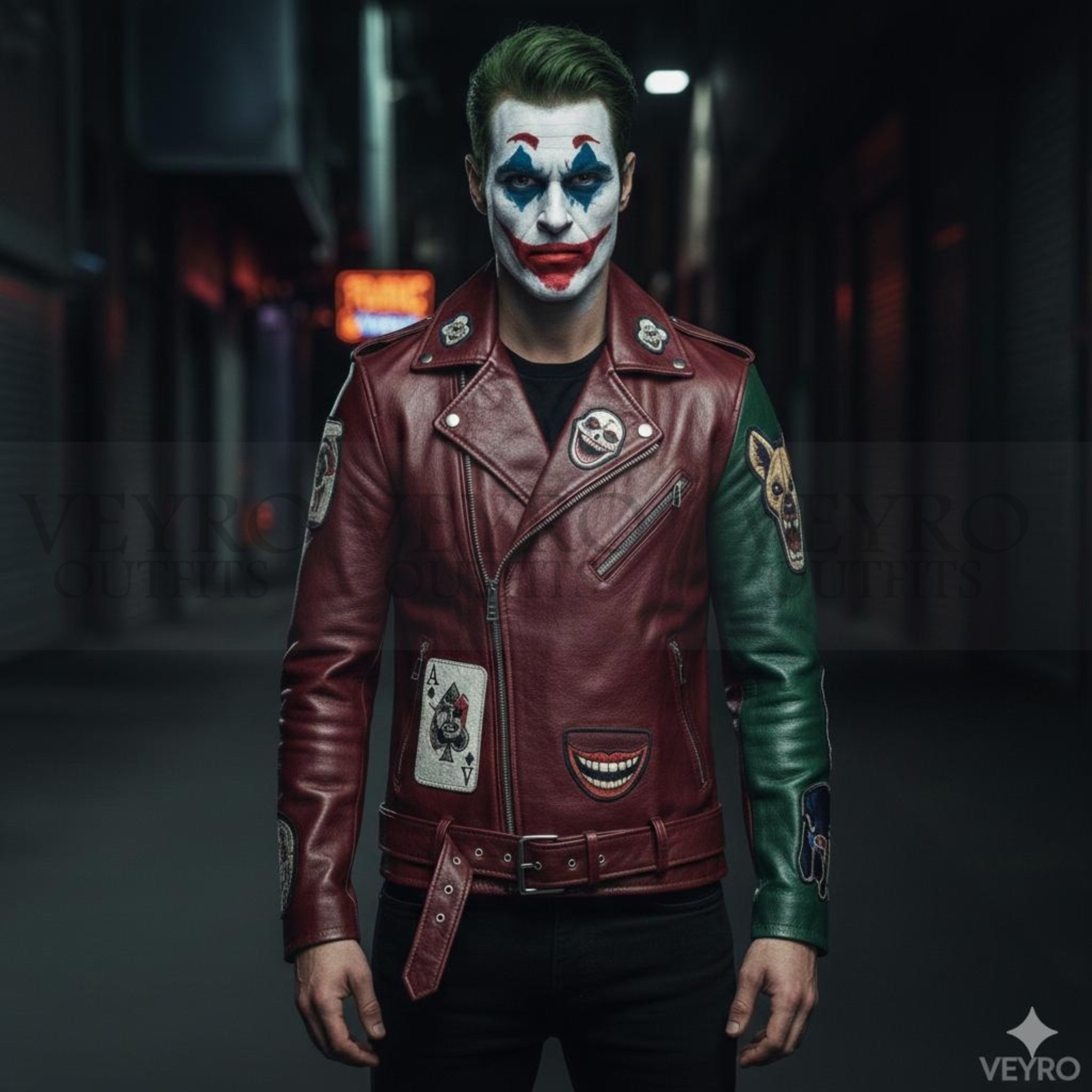 At Veyro Outfits, we bring you the perfect mix of biker style and pop culture. The Why So Serious? Two-Tone Jester Skull Biker Jacket is designed for those who want to stand out. This Joker Biker Jacket combines top-quality materials with a look that grabs attention wherever you go.