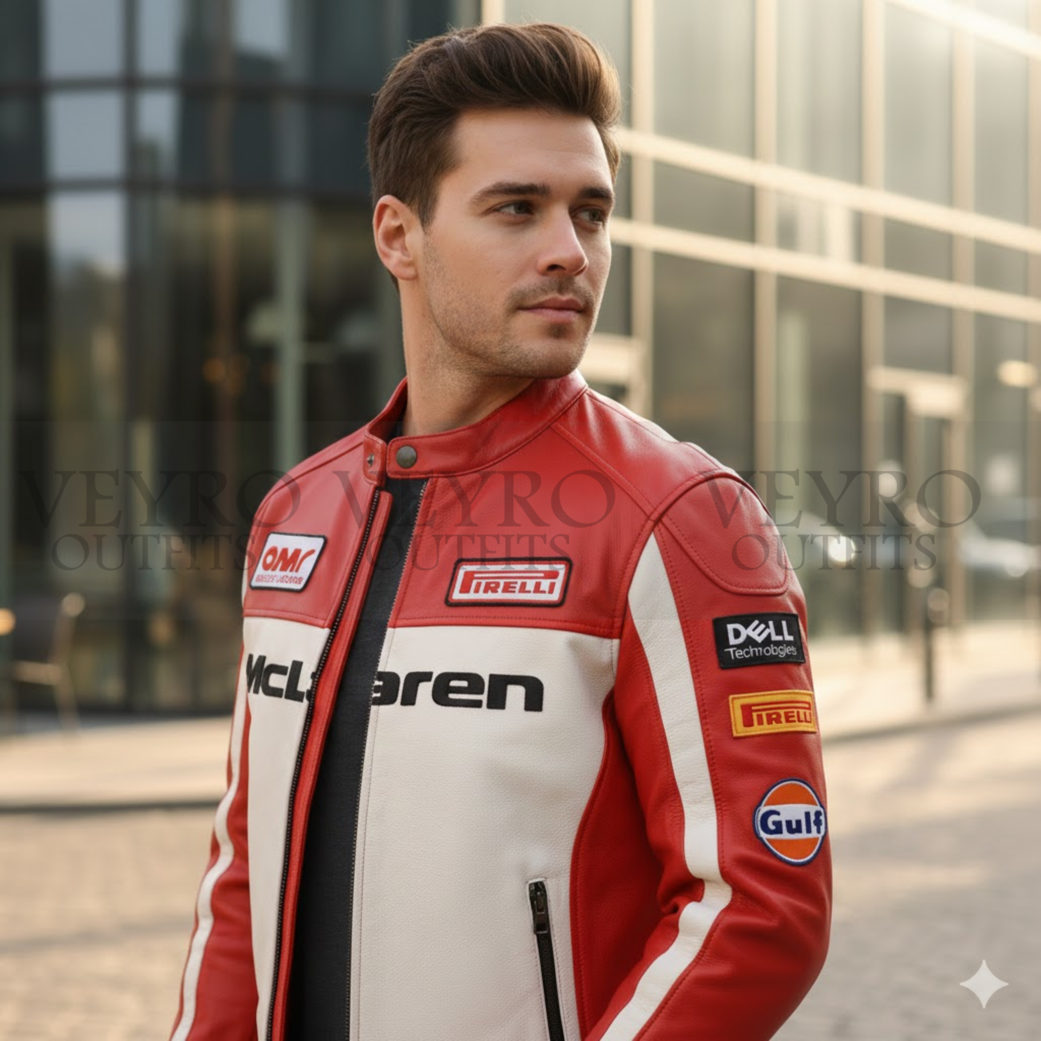 Ready to own a legend? Add this exclusive Gulf Heritage McLaren jacket to your collection today. Experience the Veyro standard of quality and style.