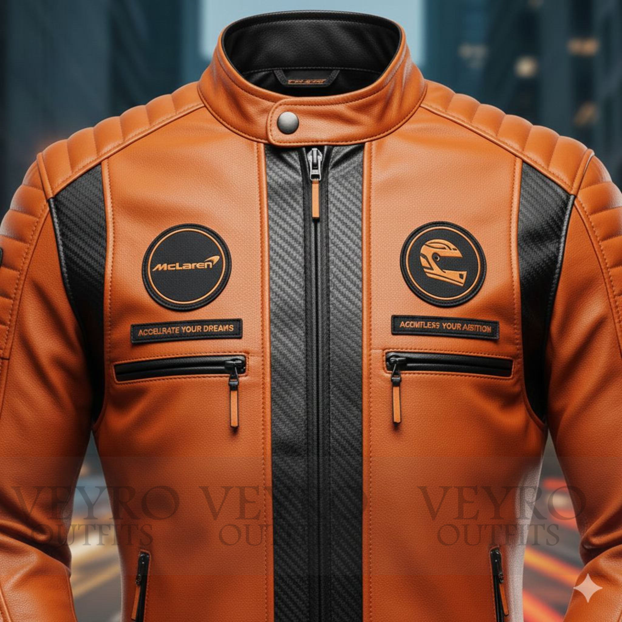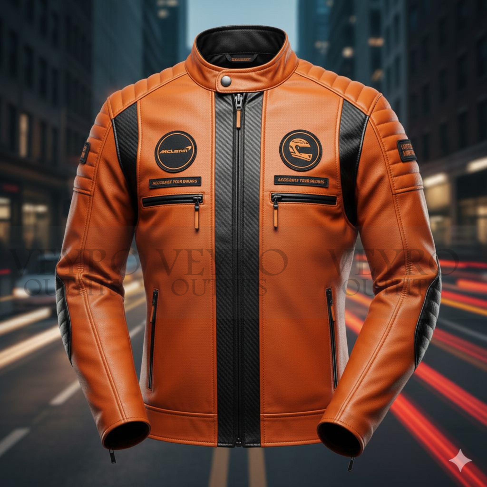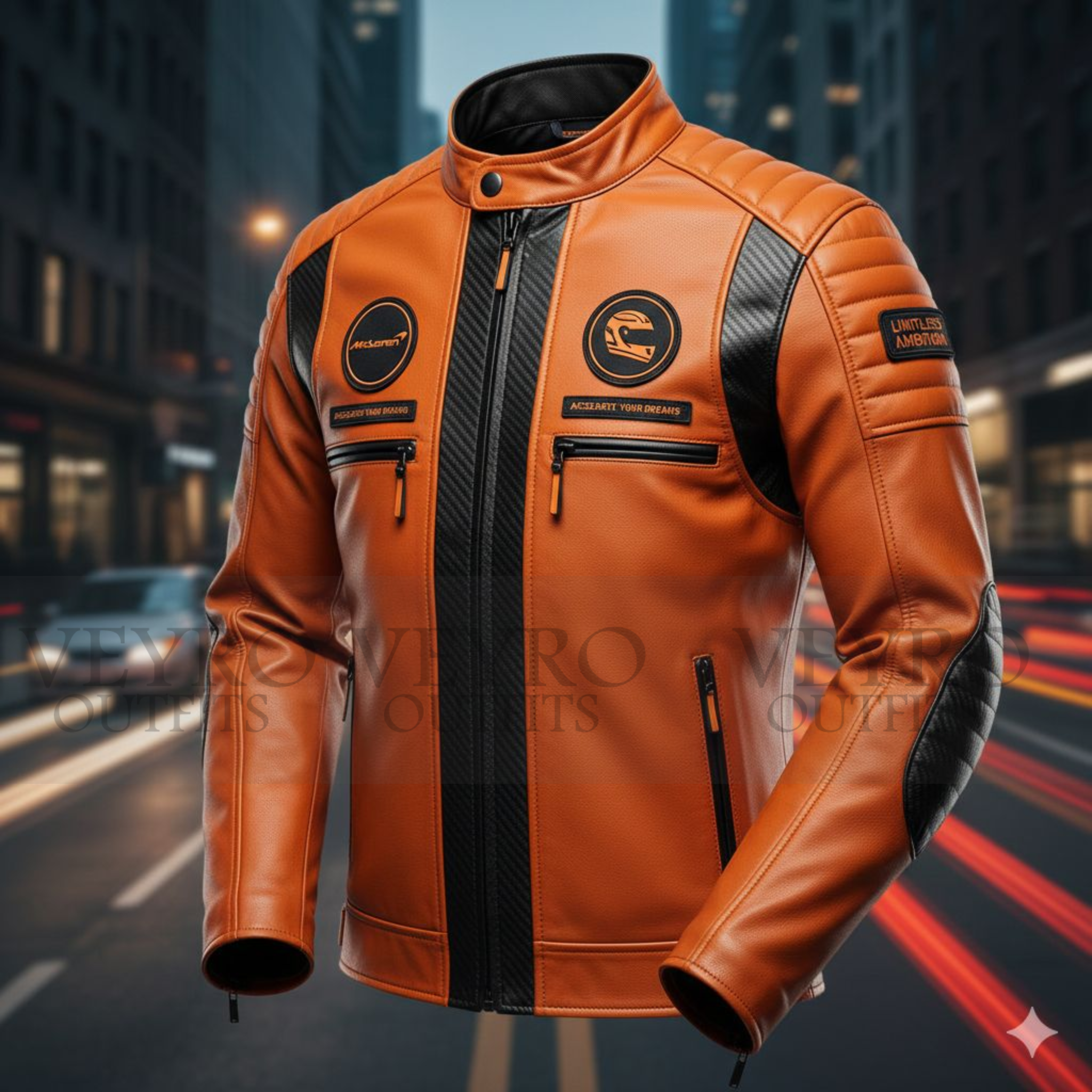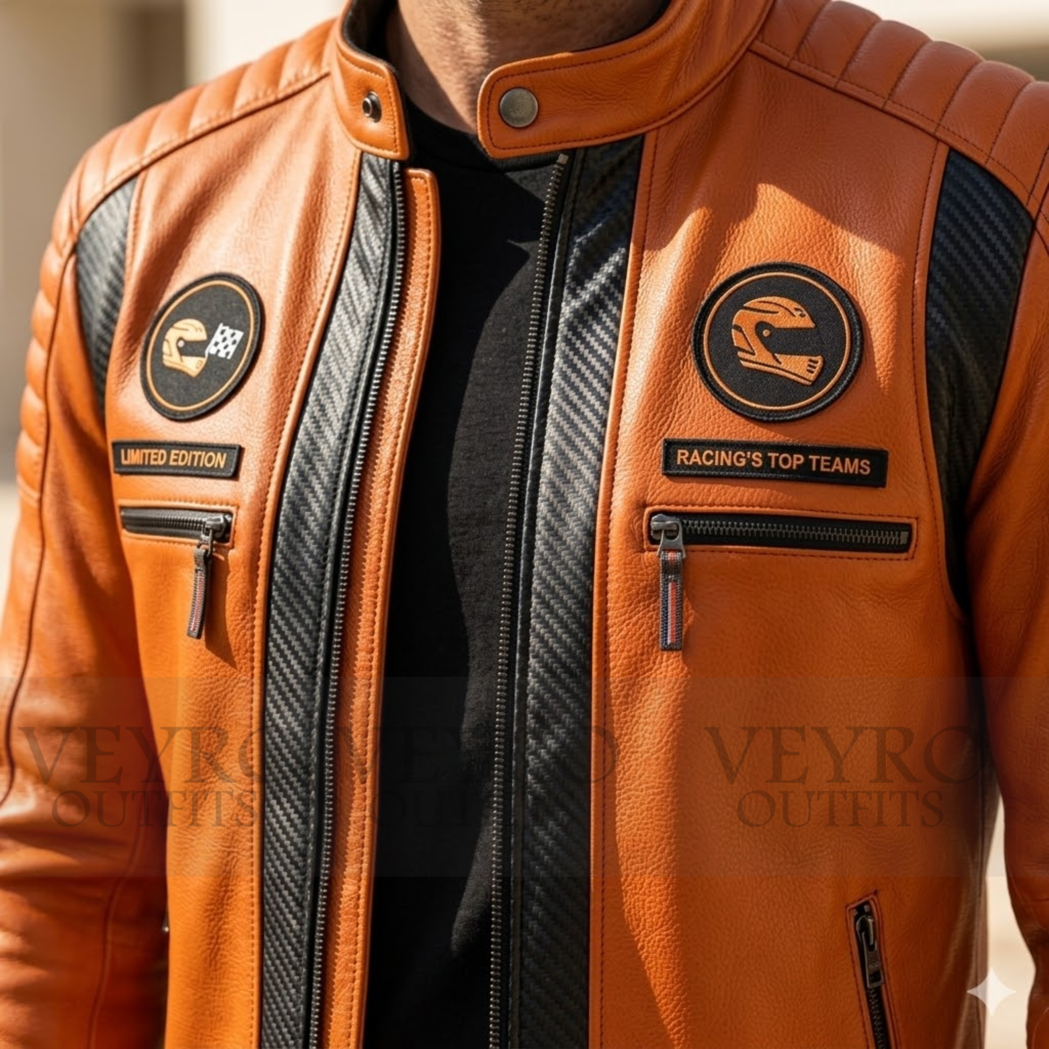 At Veyro Outfits, we believe that style and performance should go hand in hand. Every jacket we craft is designed for those who appreciate motorsport heritage and uncompromising quality. This men’s racing leather jacket reflects our commitment to premium materials, bold design, and the kind of detail that turns heads on and off the road. Based in Canada, we take pride in delivering gear that meets the demands of true enthusiasts.