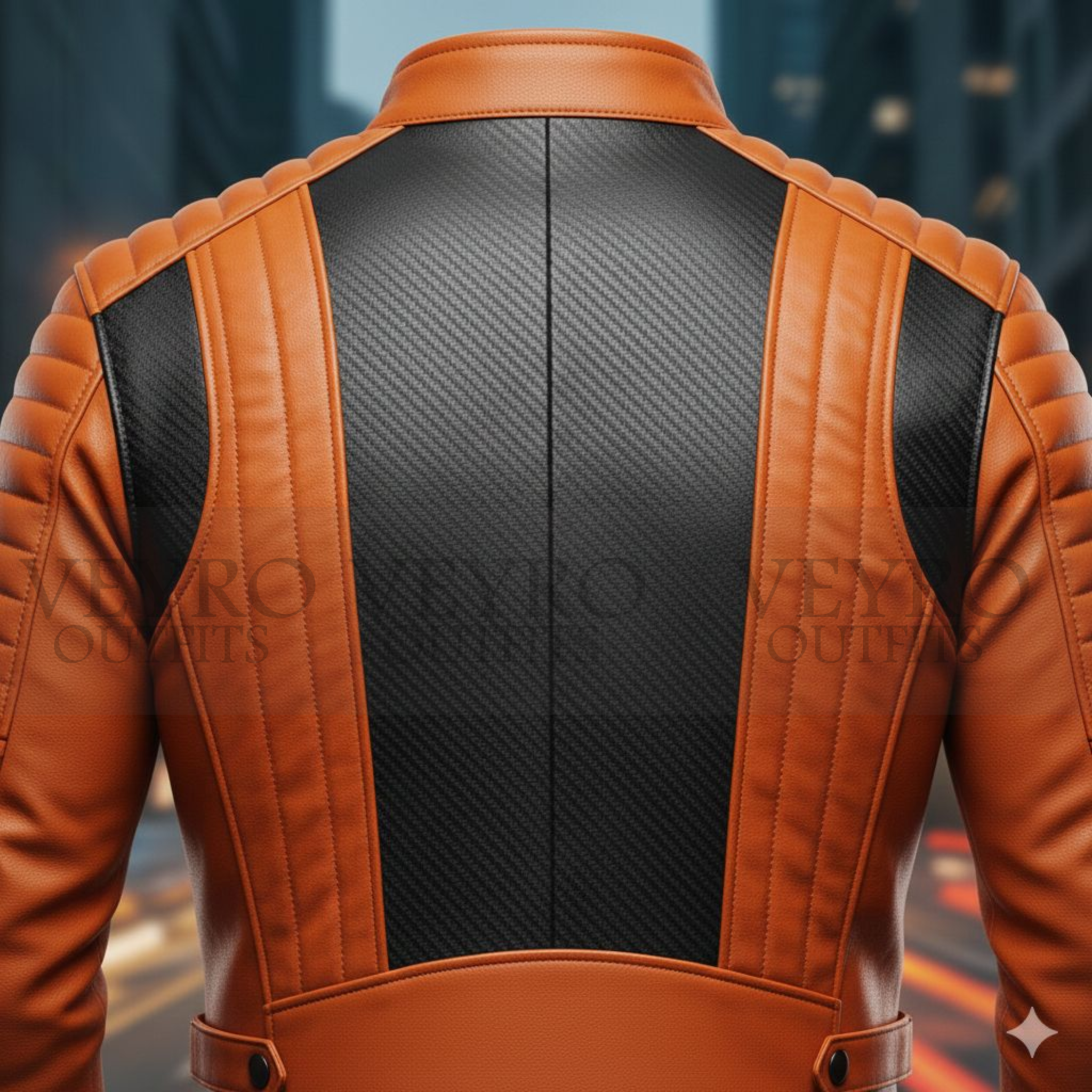 Whether you are a motorsport enthusiast or simply want a bold statement piece, this men’s racing leather jacket delivers the perfect balance of high‑performance style and everyday comfort. Designed with genuine leather and carbon‑fiber accents, the Velocity Pro stands out with its vibrant burnt orange (papaya) color and deep black details.