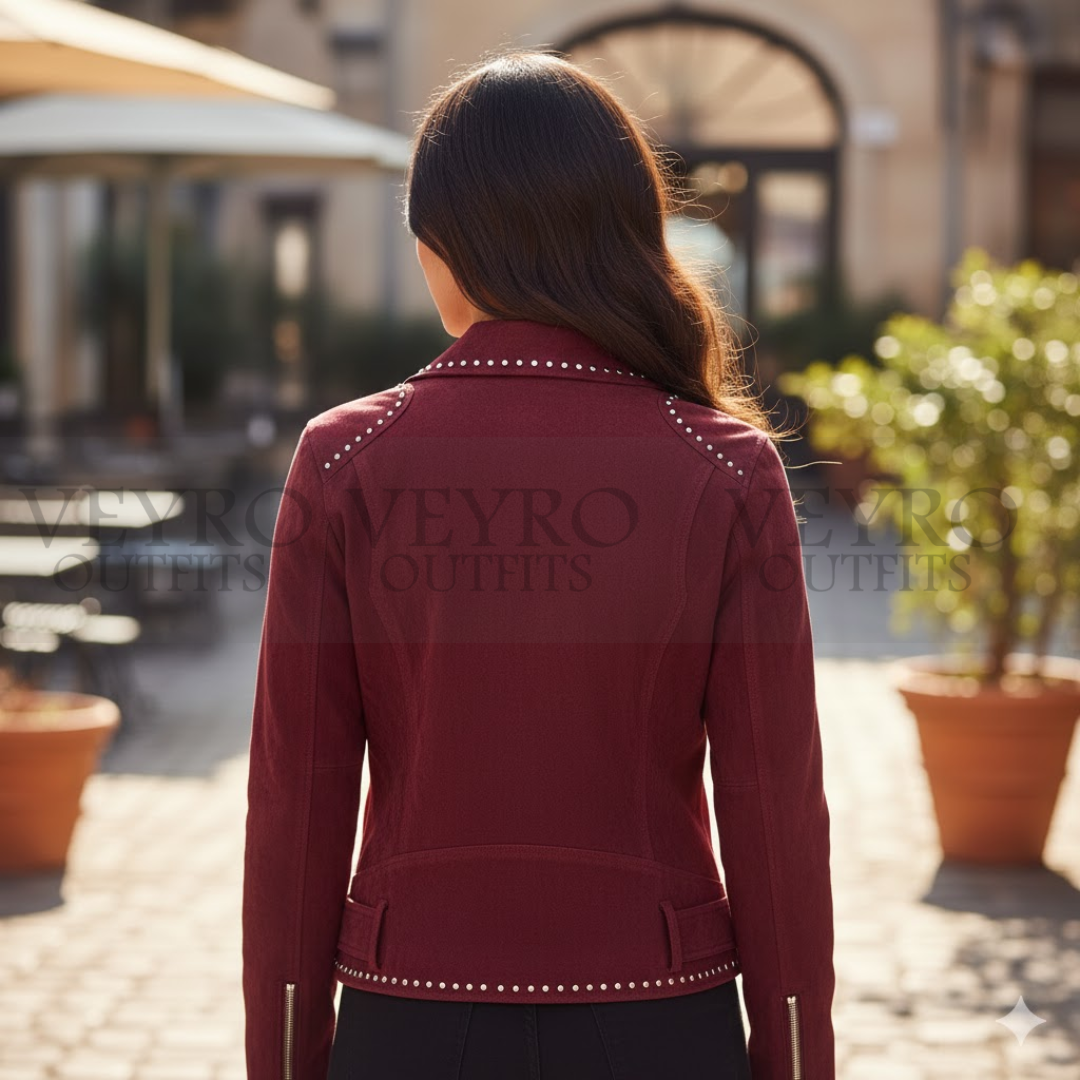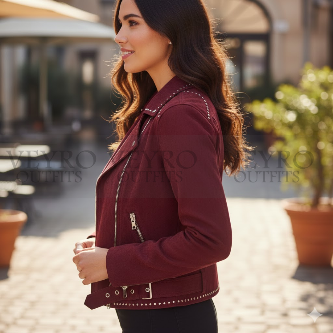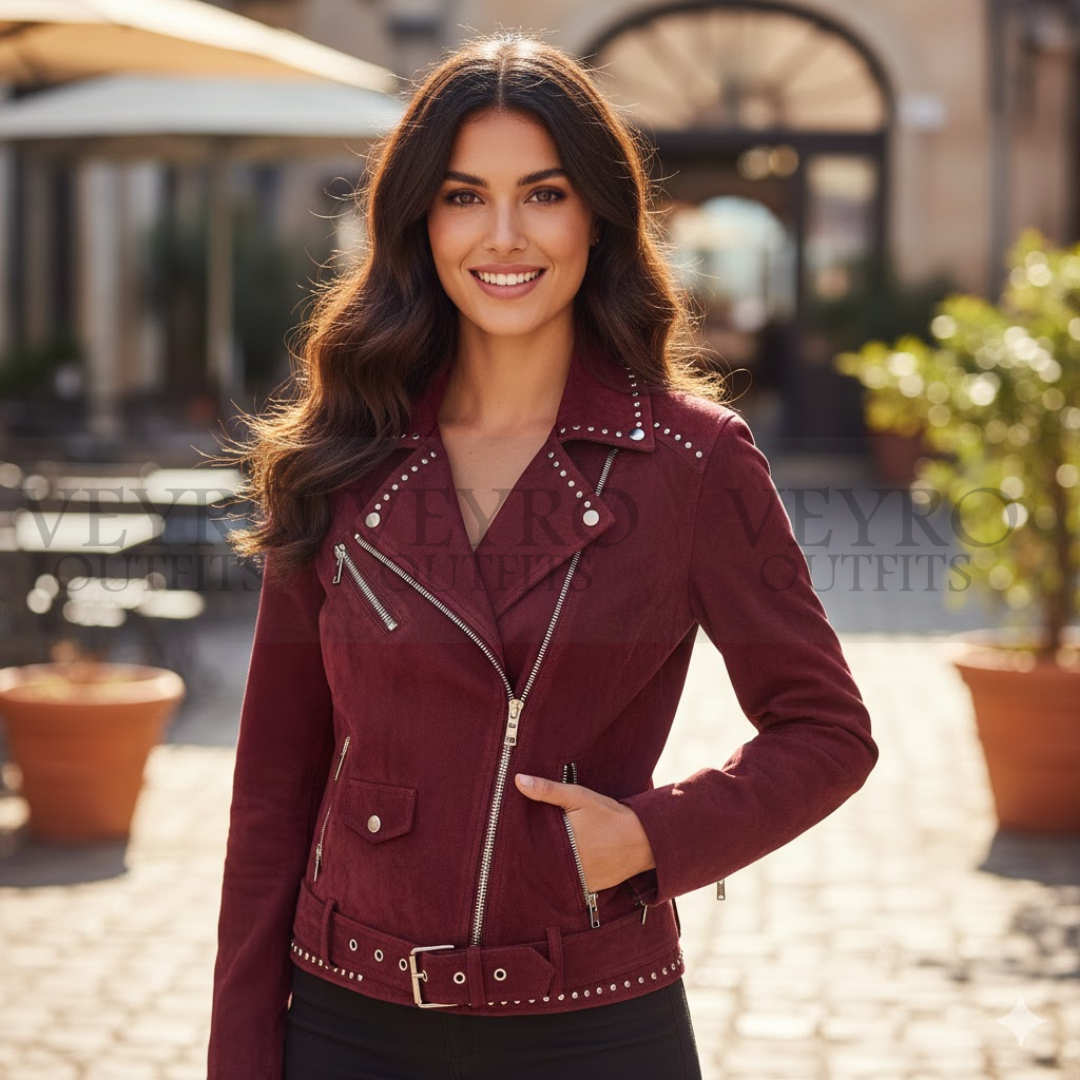 At Veyro Outfits, based in Canada, we are dedicated to bringing you statement pieces that elevate your everyday. The Rebel Rose Suede Leather Jacket exemplifies our mission: to offer uniquely designed, high-quality fashion that empowers your personal style. We focus on details that matter, ensuring each piece, like this meticulously studded jacket, becomes a cherished part of your collection.