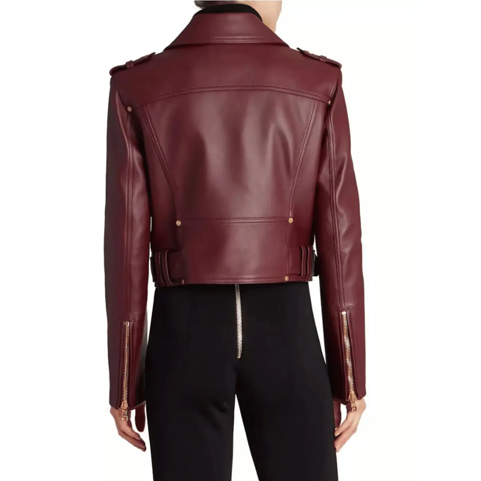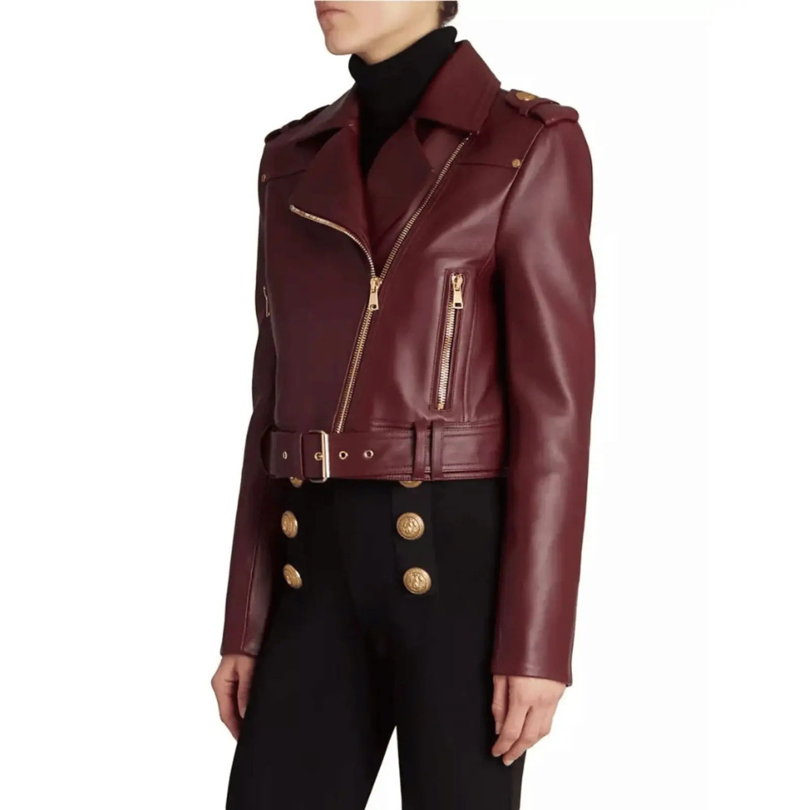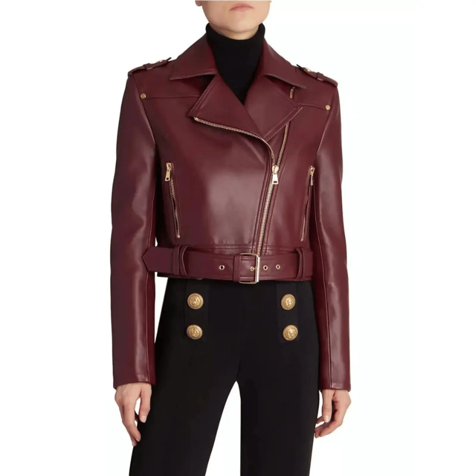 Ride in style with this Women’s Maroon Biker Jacket, available in premium cowhide or sheepskin leather. Perfect for streetwear, casual outings, or motorcycle rides, this jacket combines durability with edgy, fashionable design.