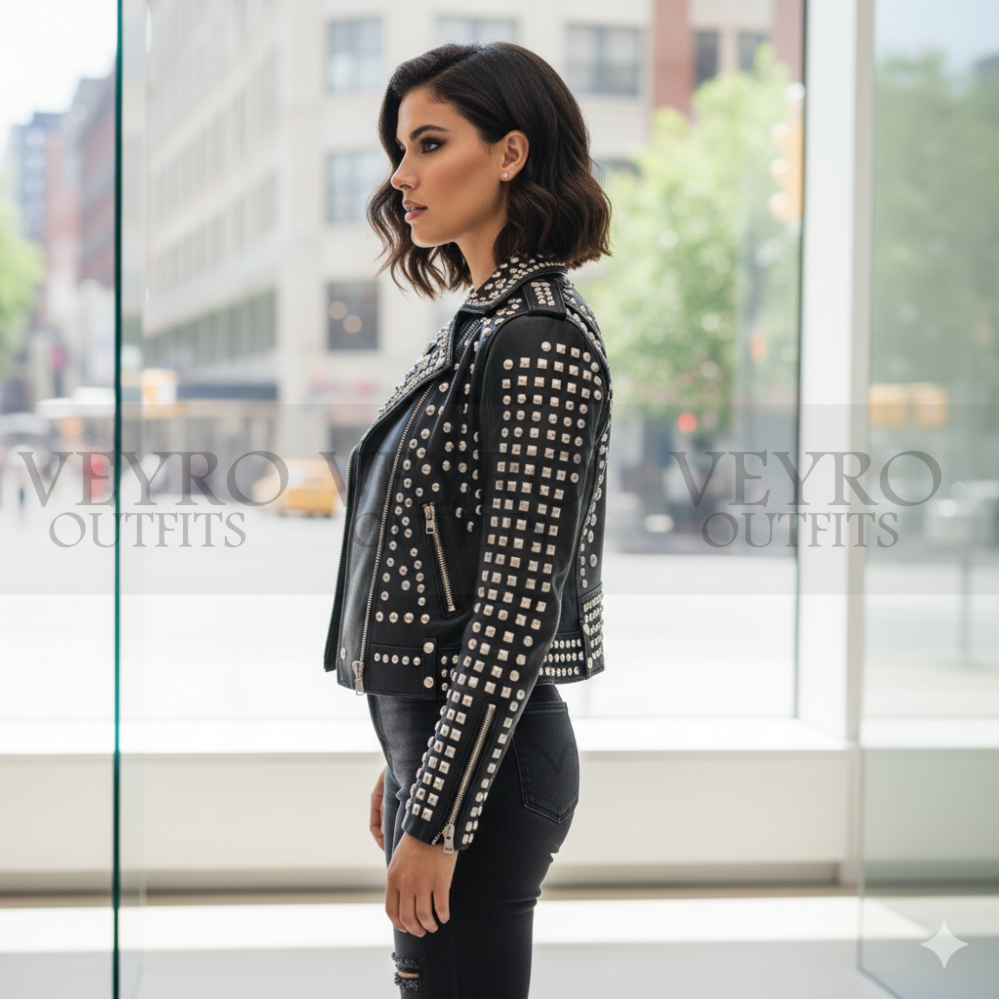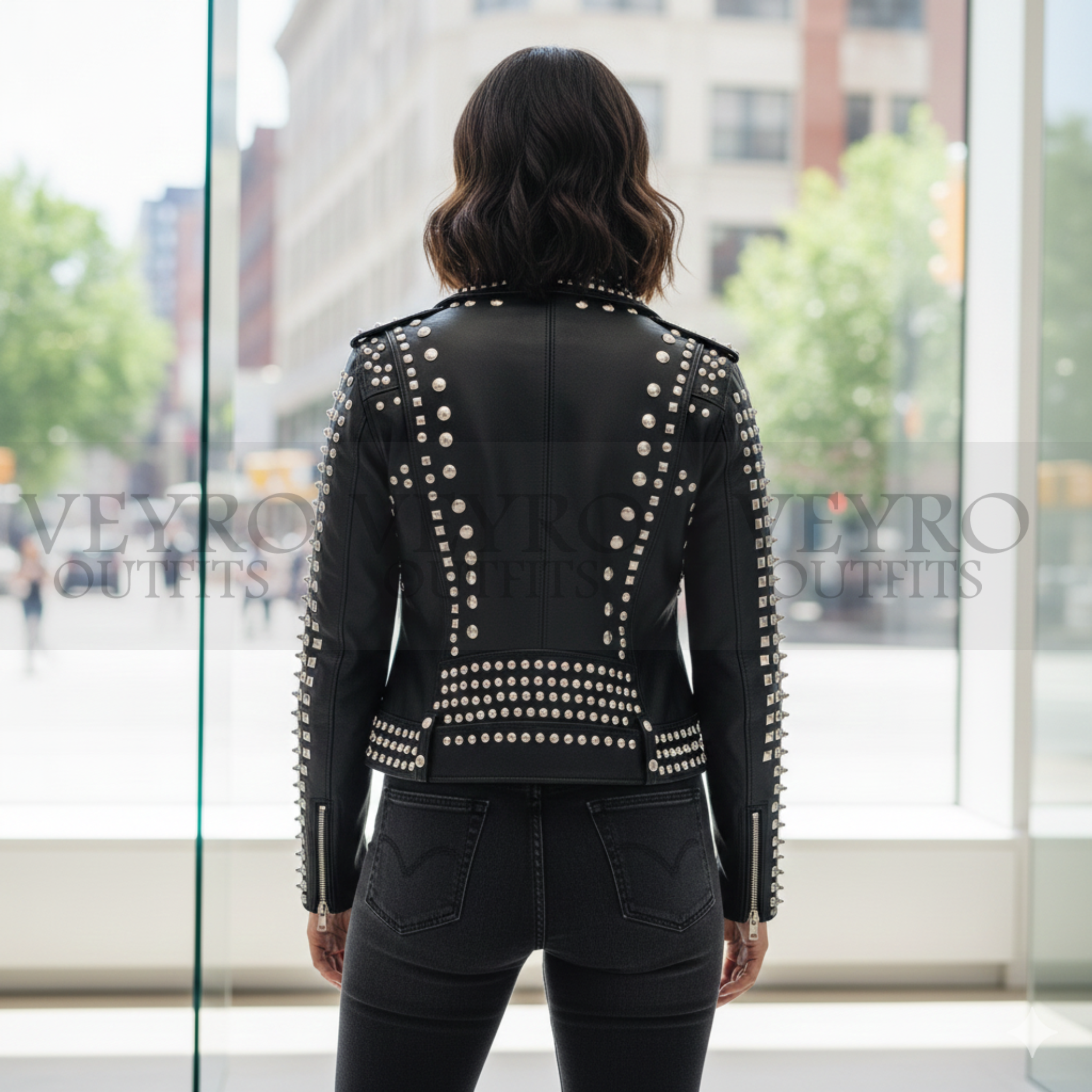 This women’s studded leather jacket is for the confident individualist. It’s for the fashion-forward professional in Montreal adding edge to her evening look, the creative in Calgary making a statement, and the trendsetter in Ottawa who defines her own rules. It’s more than a garment; it’s part of your identity.
